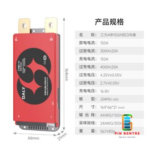 – Sản phẩm bao gồm : Mạch 4S-150A DalyBMS và Dây Balance 4S