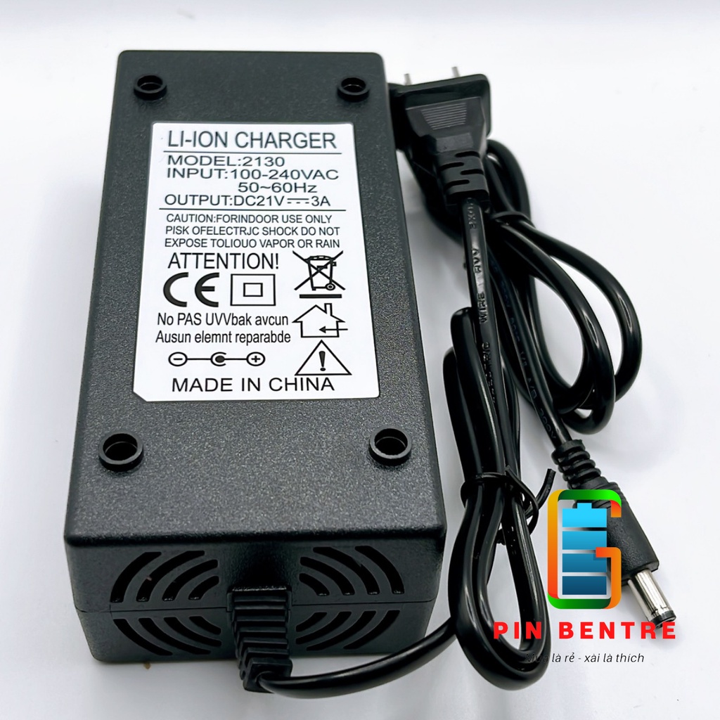 Chuyên cung cấp sạc pin Li-ion 21V, chuyên dùng cho sạc pin máy khoan – bắt vít dùng cell Li-ion và mạch 5S -18V. Có đèn báo đầy pin, sạc tự ngắt khi đầy